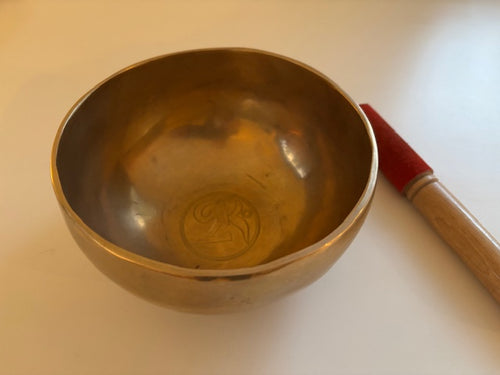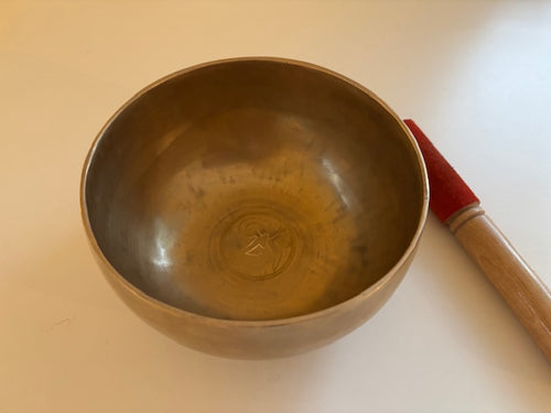 Petit bol tibétain - 414 grammes - Note: LA - Diamètre: 12 cm - Martelé à la main - 7 métaux - Livré avec un maillet